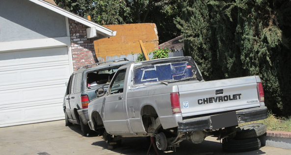 Vehicles parked on private property, visible from the public right-of-way, and appear dismantled, on jack stands, have flat tires, are wrecked, excessively dirty or have cobwebs are considered inoperative. If there is a vehicle like this in your neighborhood please report it to Code Enforcement at (209) 664-7348 or complete an online report form.Online Citizen Report Form