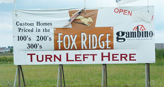 Subdivision signs are not to exceed thirty-two (32) square feet for the indication of the owner, builder, architect, sale or lease, and pertinent data regarding building construction on the site during construction only. Separate signs advertising two (2) or more separate subdivisions may be co-located upon a single directory-type sign; in such instances, the overall sign area shall be limited to fifty (50) square feet per side, not to exceed 100 square feet in total sign area. In no case shall there be more than one (1) off-premise sales sign of any type per lot frontage. No sign shall exceed an overall height of twelve (12') feet in any district.Turlock Municipal Code 9-2-505(6)